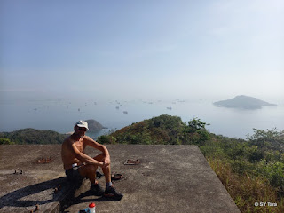 Wij gaan nog even uitwaaien op Taboga eiland. In het weekend is het een zeer geliefd uitstapje voor City Panamezen, een half uurtje varen met de veerboot, en erg druk en lawaaierig. Door de weeks is het uitgestorven, slechts 1 restaurantje is open, maar wel met een Nederlandse eigenaar én bitterballen;-) We maken mooie wandelingen, waarvan één naar een WO 2 bunker gebouwd door de USA om het Panama kanaal te beschermen tegen een mogelijke Japanse aanval. Nu ziet het er vredig uit gelukkig, maar het nieuws over de vreselijke oorlog in Oekraïne maakt ons ervan bewust dat we ook in dat opzicht weinig leren van de geschiedenis....